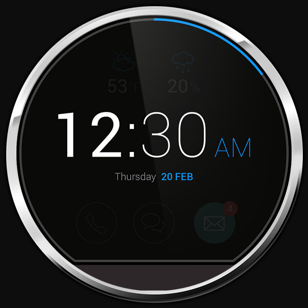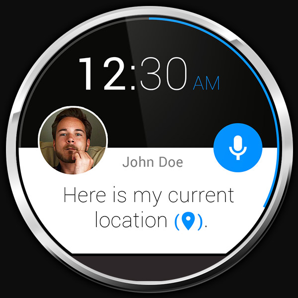 For the Moto 360 Design Face-Off contest from Motorola I decided to dig a little deeper and come up with a short story based around messaging and navigation. The “standby design” of the watch face is very simple and clean emphasizing the current time in digital as well as the date and weekday. Everything is wrapped in an animated seconds counter around the edge of the display. This approach using very few active pixels positively adds to the overall battery life.