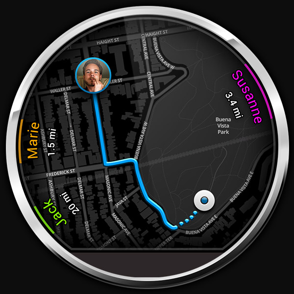 My story is that the user gets a notification from a friend to meet up. By replying and pressing on the location link a map is revealing his friend’s position as well as other possible people who are nearby and sharing their locations. I also did some color variants to show that the design is easily compatible with different colored wrist bands. Since I only had a week for concept, layout and prototyping one feature I would have liked to work on a bit more is a calendar integration. More on Behance ...